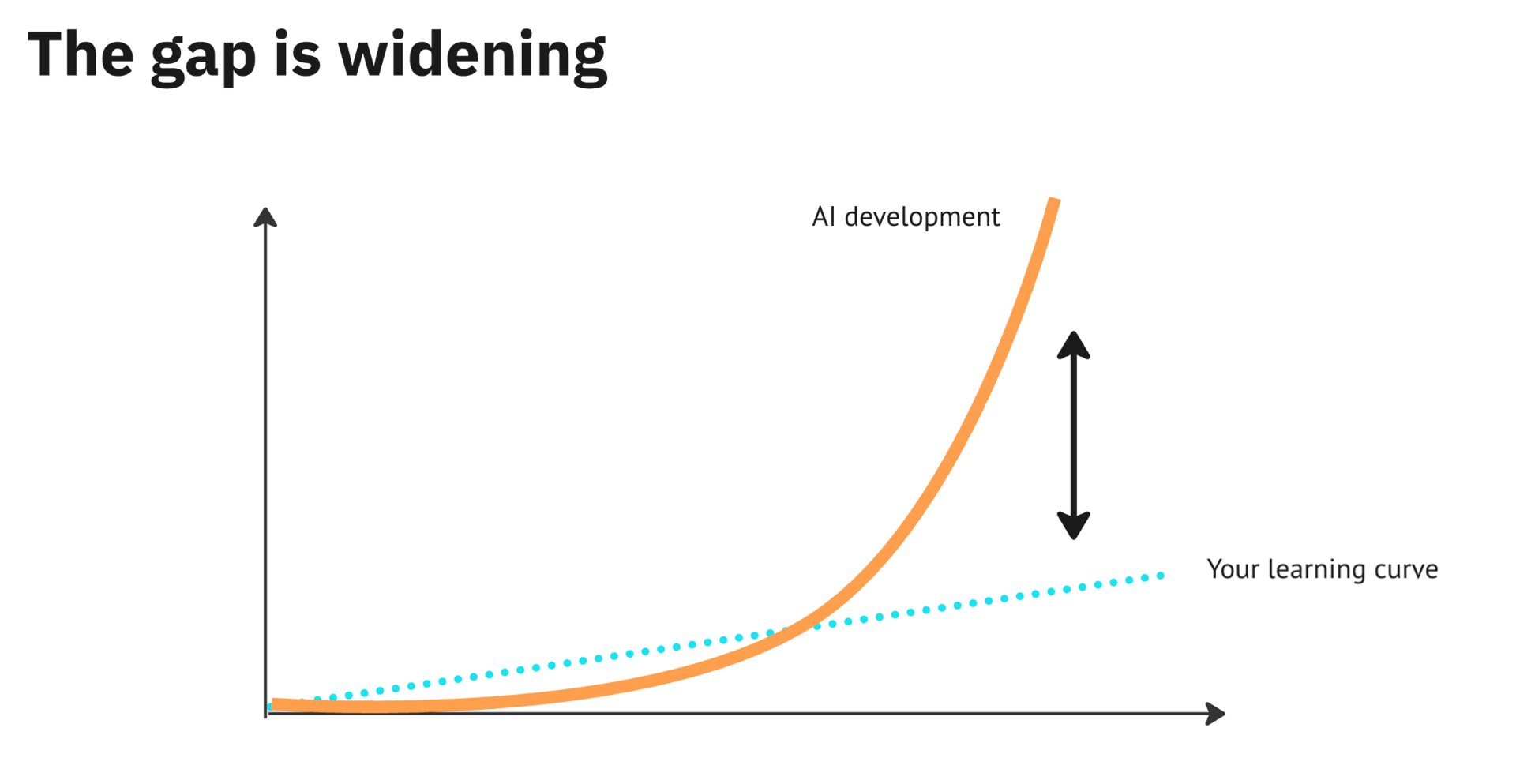 Auf der einen Seite: exponentielles Wachstum der KI-Fähigkeiten. Auf der anderen Seite: unser lineares Lernverhalten.